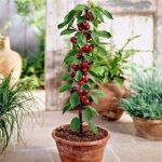 Voćne sadnice stubaste višnje sazrevaju u julu. Plodovi su tamno crvene boje, sočnog ukusa, srednje veličine i radjaju redovno. Voćne sadnice se mogu saditi na međusobnom rastojanju od 0,5-1m i rednom razmaku od tri metara. Sadnice voća uspešno se gaje kako na otvorenim poljima tako i u saksijama. Stablo raste pravo sa vrlo malim bočnim grančicama. Podloga na kojoj se kalemi stubasta visnja je magriva.